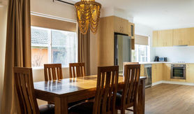The Currawong Suite is a three bedroom, one bathroom suite with an additional toilet, situated upstairs, and a large living are with 8 seater table, leather lounge and large screen TV. The suite is fully self-contained, featuring an open kitchen, large lounge and dining area, spacious bathroom with bespoke cabinetry, compact laundry with washer, dryer and additional toilet. Enjoy a balcony area for entertaining or relaxing off the main living area.